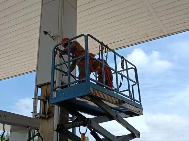 海南万宁石油莲花加油站施工作业现场,正在向施工人员做安全培训的周诚帝拿起安全带,向大家示范起正确系法。只见他先系好安全带的胸带,然后束紧腰带,最后系好腿带,最后将安全带进行调整,保持在松紧适度的状态。穿好安全带后,周诚帝提高声音说道:“大家一定不要嫌麻烦,高空作业时安全带就是‘保命带’,每一个环都要仔细系好!”说着,他还为大家展示了在高处平台移动时,如何按照“一步一挂”操作步骤,保证每一位施工人员都会正确使用安全带。
