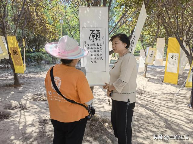 俪睿关工委常务副主任、河南省榜书艺术协会部主任张玉凤女士和李东辉校长为大众解说“愿”之微妙。