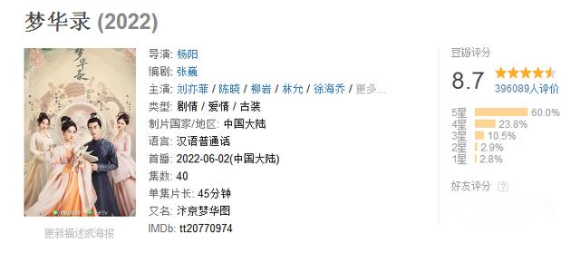 《梦华录》一出手便赢得了傲人的数据,豆瓣39万人评分8.7。