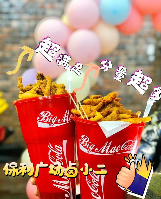 还有随处可见可爱又不失“亲和力”的“店小二”形象+以亮眼的黄色为主喜庆的色彩,非常显眼,方便打卡!店铺装修简约大气,追剧宵夜必备!勾人的炸物香气不断从窗口飘出,也让这门口的人又多上了几圈果然人间炸串香,最扶人胃超多串串可选,拿着吃也方便!不仅识别度高,还俘获了一大批年轻人的喜爱,成为了一众潮流青年争相打卡之地。