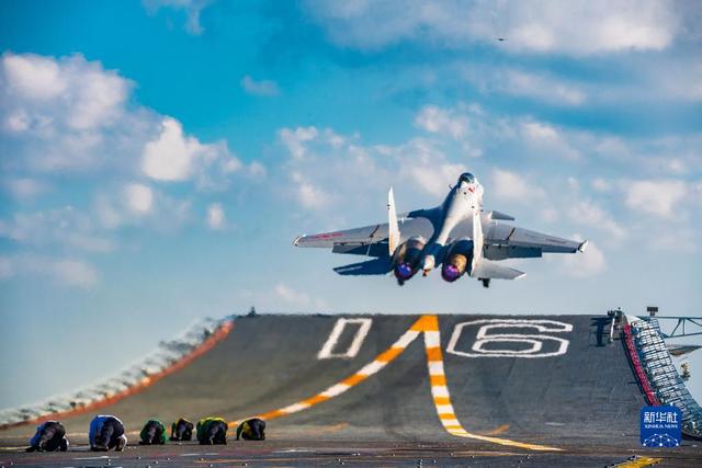 歼-15舰载战斗机从辽宁舰滑跃起飞(2021年9月14日摄)。新华社发(孙翔 摄)