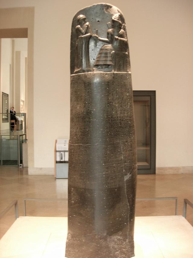 《汉谟拉比法典》石柱,黑色玄武岩,高225厘米,藏于卢浮宫。