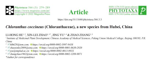 《Phytotaxa》创刊于2009年,已被国际权威数据库SCIE收录,其发文范围包括植物学等领域,其中植物分类学方面被视为权威。论文在此刊发表,意味着植物新种绯红金粟兰已得到业界的认可。至此,为期六年的绯红金粟兰发现之旅告一段落。