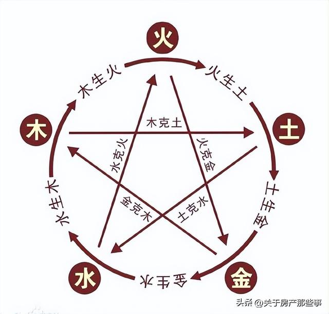 “五行”之间有其内在的联系,首先体现为相生、相克理论。在相生关系中,金生水,水生木,木生火,火生土,土生金;在相克的关系中,金克木,木克土,土克水,水克火,火克金。