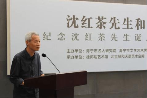 上海大学美术学院徐建融教授在书面发言中表示,浙江画坛,有好几位在民国时颇有成就的画家,50年代后因为脱离了主流而局限于地方,其名声淡出画史,但其实他们的成就是绝不亚于某些“全国”名头的,“据我所知的有温州的徐堇侯、徐州的周一云,海宁的沈红茶也是其中的一位。与徐堇侯、周一云不同,沈红茶先生不仅以传统的功力见长,他还富于现代的创意。他的传统创作,尤以芭蕉竹帘最具特色,清真雅正的笔墨、形象、意境在同时代画家中首屈一指。他的简笔山水,尤其是文字符号的山水,可能是从西方现代派艺术中汲取的创意,大胆而且新颖,其探索精神,开了今天现代水墨的风气之先。一个传统的老先生,能有如此现代的艺术创新意识,尤其值得我们敬佩。”