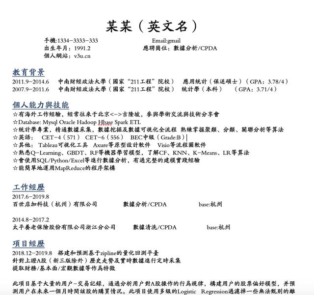 孔子云:食不厌精,脍不厌细。字面意思是:粮食越精致越好,肉类切得越细越好,而实际上强调的是做事情要细致、精益求精,孔夫子阐之未尽,写简历同样不厌精亦不厌细,在上一篇文章:秋季招聘季如何制作一款“秀色可餐”的简历?由ShareLatex和Python3打造中,阐述了如何制作一款漂亮的简历模板,但这只是“外在”,一份简历真正灵魂则在于“内涵”,如果内容与模板不匹配,那无异于金玉其外败絮其中,所以吸引招聘者的还得是内容。有道是:模板为王,内容为皇。所以本次我们来讨论一下到底怎么写一份技术简历。