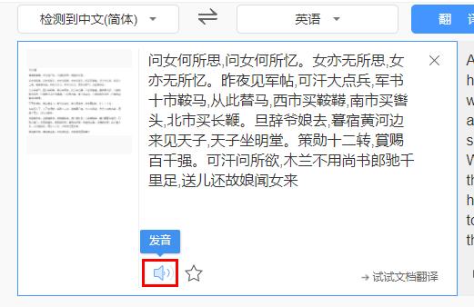 这是我们常用来翻译的一个网站,它能够支持多种国家语言进行翻译,同时也能够进行拍图读字的操作。我们需要先将图片准备好,然后拖拽进翻译区域,它就会自动将图片中的文字识别出来,随后点击下方的发音功能即可。
