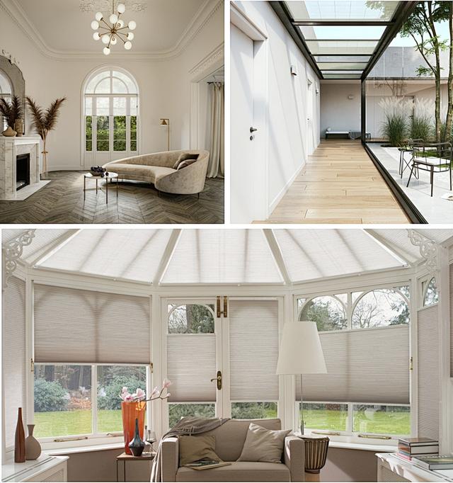 透光蜂巢帘对阳光的双重阻隔,具有独特的阳光过滤效果,可使猛烈阳光进入室内后变得非常柔和,倍增室内温馨氛围。
