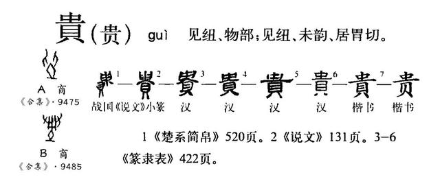 贵字后世的演变,只是笔划规整简捷地变化,因此其意象没变,一直如前所述。