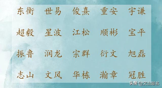 男孩名字代表着男孩的外在形象,伴随着男孩成长,也赋予了男孩对应的涵养气质,故而应当慎重,我们在给男宝宝取名的时候,可以把孩子的最后一个字选择二声,这样的名字读音好听,朗朗上口。