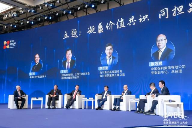 首个高端对话环节以“凝聚价值共识,同担品牌使命”为主题,邀请到全国政协委员、全国工商联常委、月星集团董事局主席丁佐宏,中国保利集团有限公司党委副书记、总经理张万顺,中国贵州茅台酒厂(集团)有限责任公司党委副书记卓玛才让,海尔集团高级副总裁、海尔智家董事长兼总裁李华刚,波司登品牌创始人、波司登集团董事局主席兼总裁高德康,高通公司中国区董事长孟樸等6位企业家代表,探讨了企业品牌的价值是什么,如何从品牌的多重价值属性中发现普遍规律等话题。