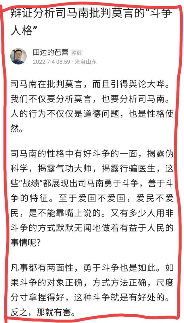 我不喜欢司马南,但也不希望他就此消失。没有这种人的存在,似乎是缺了点什么,社会上不良现象是客观存在的,需要有人来批评。但是,如果这种人太过嚣张跋扈,也会影响社会稳定发展和各阶层的团结。我们已经生活在一个需要注意尺度和分寸的时代,需要思维缜密,言行得体。勇敢更多的是表现在敢于操刀向内,自我解剖,批评他人之前先审视一下自己。